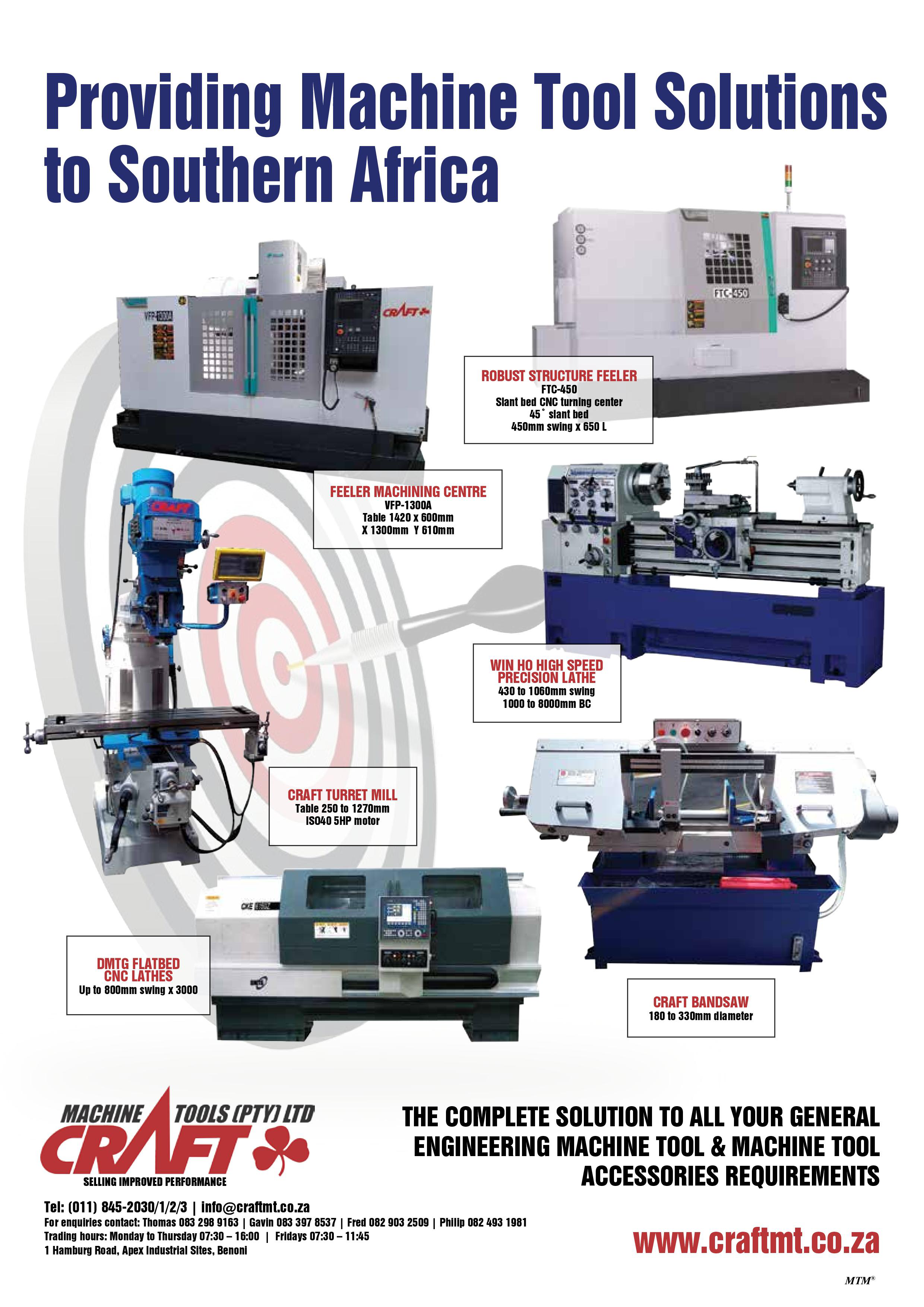 The company is southern African sole agent for Craft from Taiwan and China, the Dalian Machine Tool Group from China, Fair Friend (Feeler) and WinHo both from Taiwan.