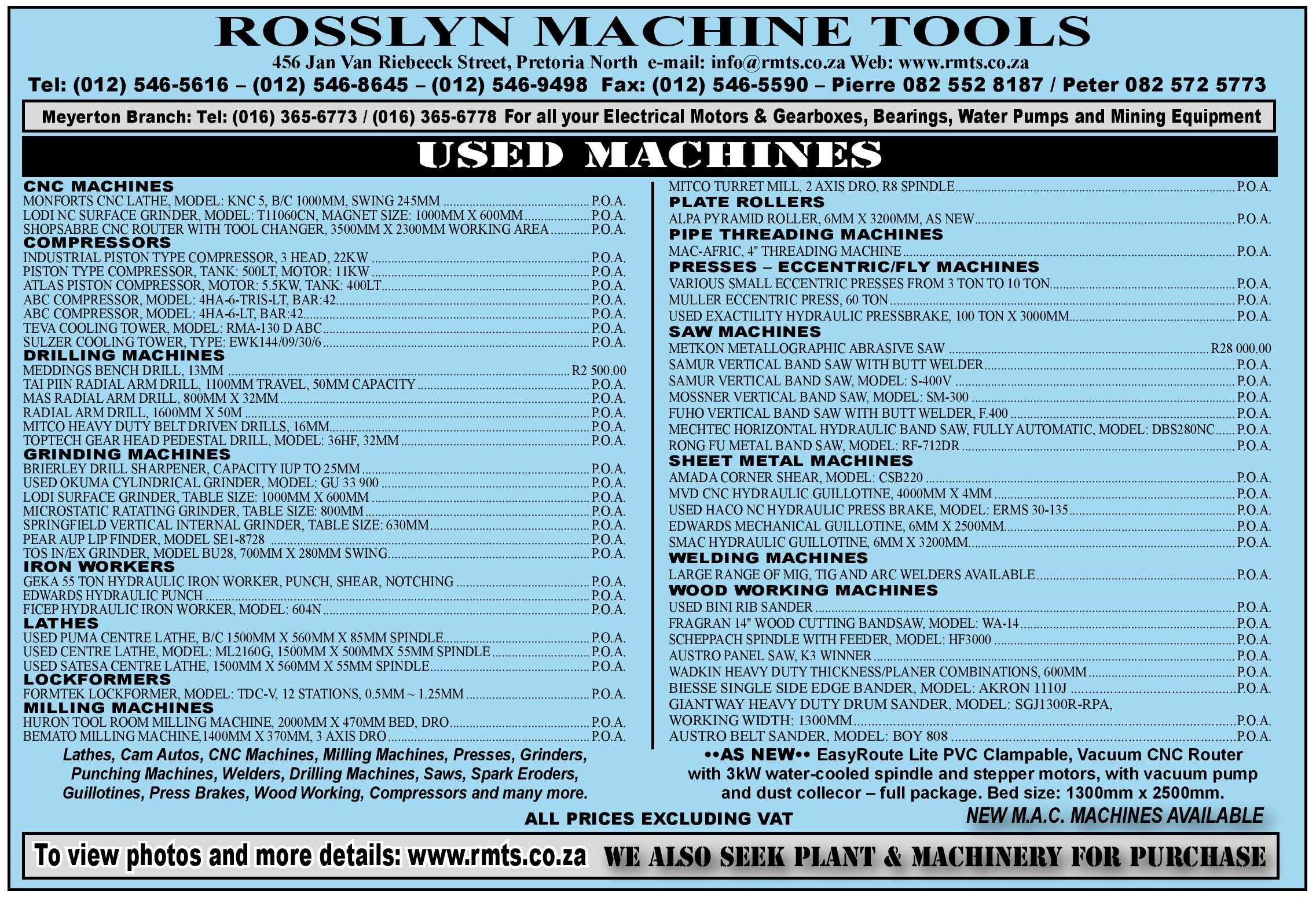 PROMOTIONS USED MACHINERY AVAILABLE 20th March 2023 139 FacebookTwitterLinkedinWhatsApp Visit Rosslyn Machine Tools
