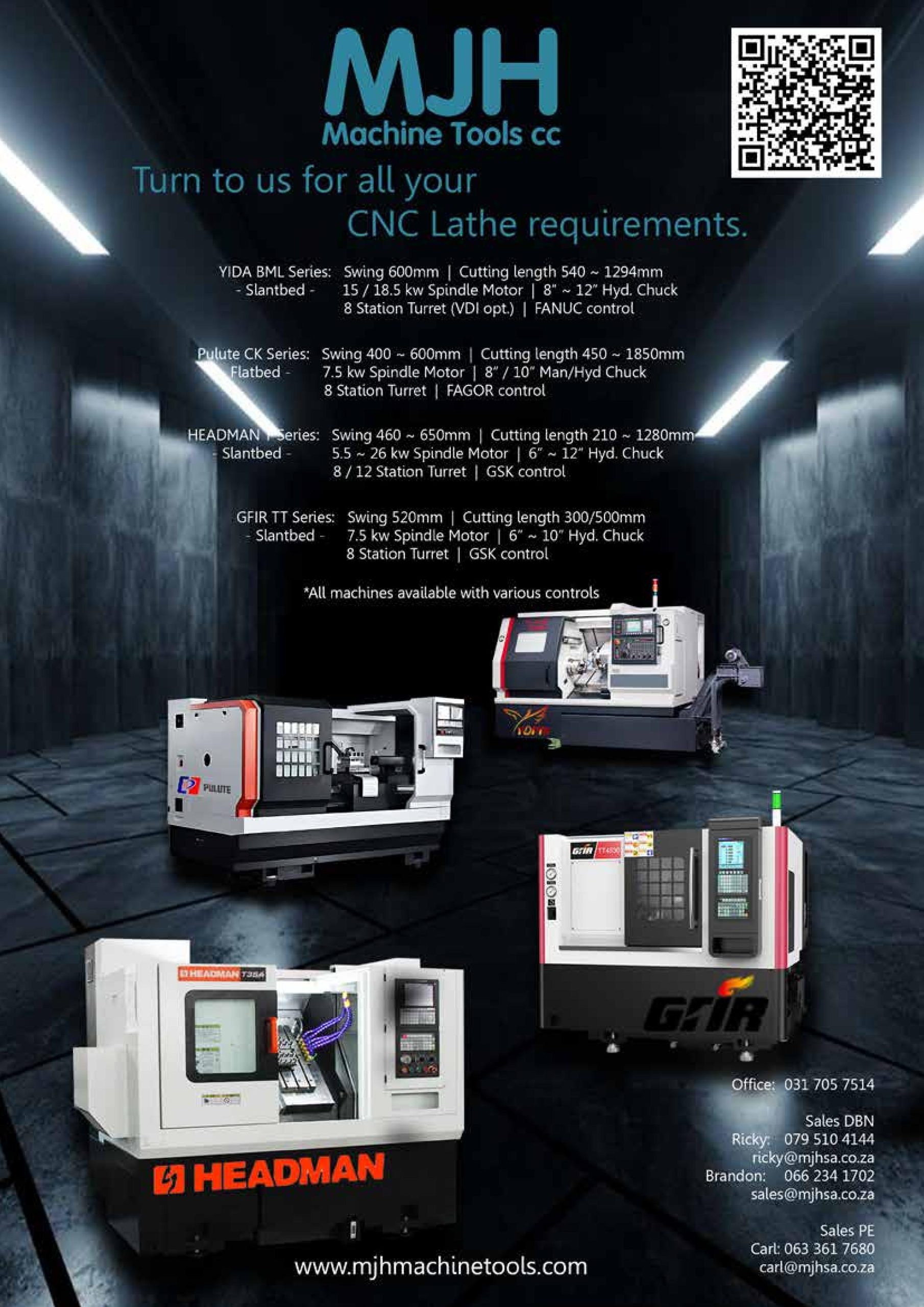 For further information, please contact MJH Machine Tools – Tel: (031) 705 7514.