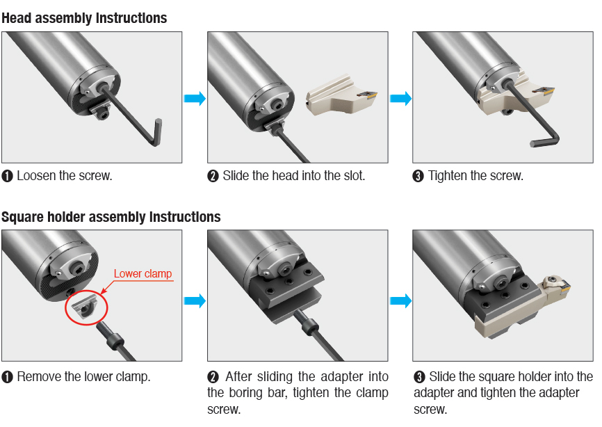 In order to reach high speeds and feeds without damaging the workpiece, spindle, insert and so on, TaeguTec’s Advance Turning team developed a revolutionary damping system located inside the shank which results in a smooth surface finish as well as an internal coolant supply for longer tool life and stable machining, due to the rigid clamping system. All these technologically advanced features increase feeds and cutting speeds, making it highly productive. In order to provide a full range of options, HUSH-BORE is available in many different diameters and in a few tool lengths. The various exchangeable heads can be securely fastened with an unrivalled serrated coupling located in the boring bars.